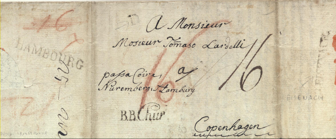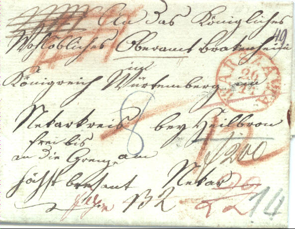 gemäß dem österreichischen Tarif von 1817, gültig bis 1842, wurde das österreichische Franko in der 2. Gew.-Stufe doppelt angesetzt. Im Postvertrag Preußen-Niederlande von 1817, der auf deinen Brief anzuwenden ist, wurde vereinbart, dass ein einfacher Brief bis zu einem Loth gilt. Mit jedem halben Loth steigt der Portobetrag um die Hälfe der gewöhnlichen Taxe.