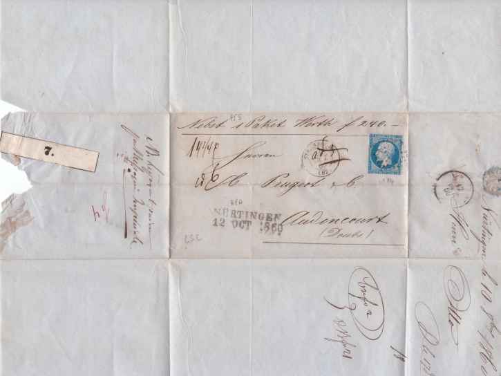 Zweitens die Kenntnisse der französischen PostgeschichteFakten: Gestempelt Nürtingen 12 Oktober 1860 - Strassbourg 16 Oktober 1860 -