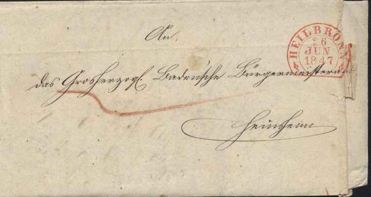 Kirchhausen = Stempel Heilbronn = württembergisch - als 2 Kreuzer Portobrief.