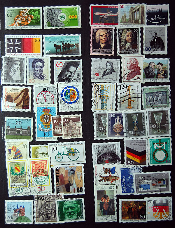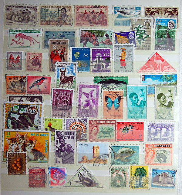 Die Alben sind mittelmäßig gut sortiert, alle Marken sind ohne Falz und ein buntes Sammelsurium aus den folgenden Ländern: