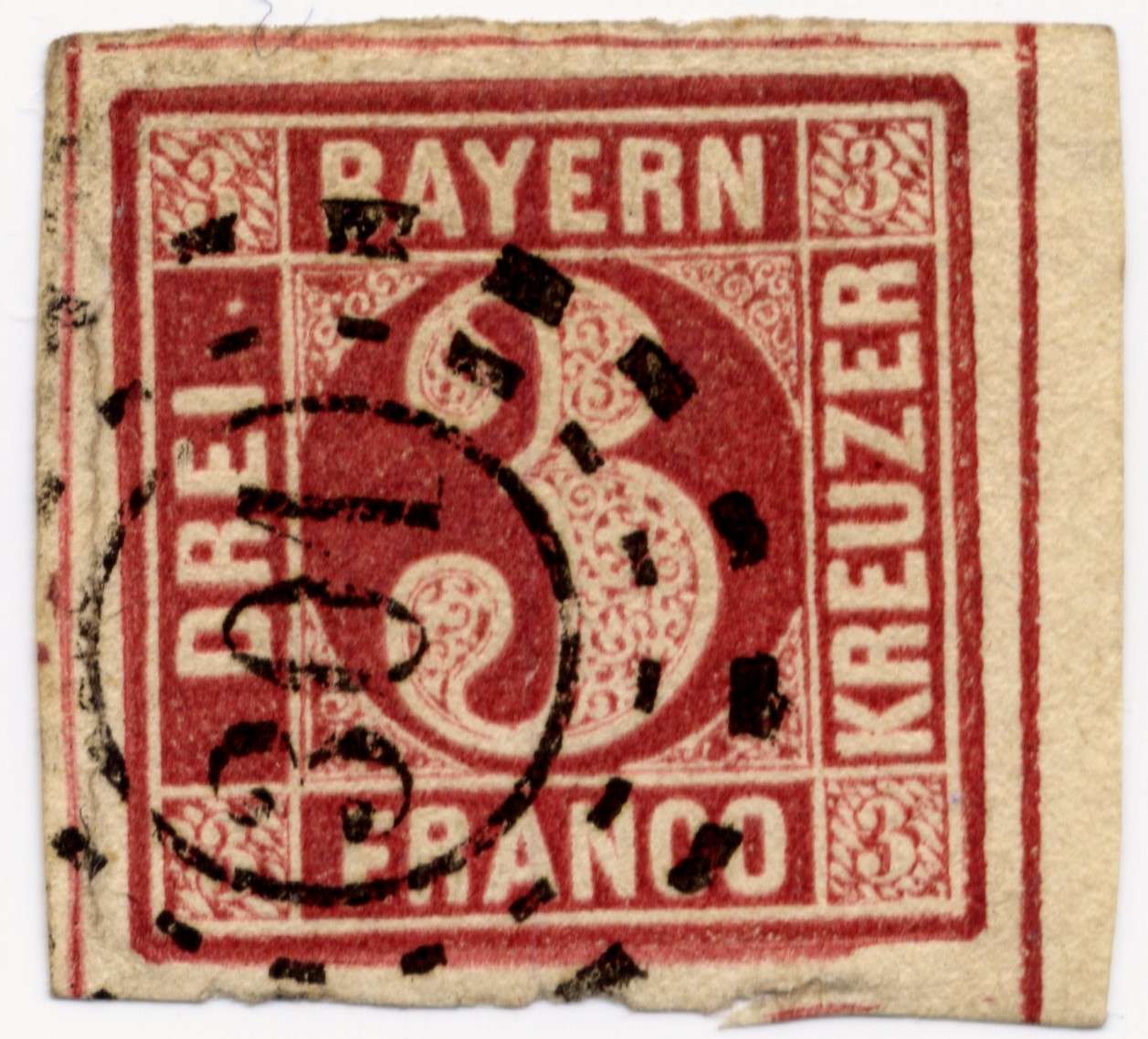 ich kann eine 2II5 mit 3 – wenn man sehr großzügig ist sind es 4 – abgeschrägten Ecken zeigen. Klebt auf einem Brief vom 23.12.1859.