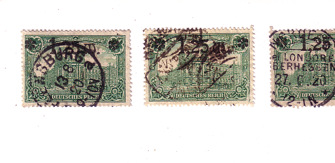 Habe zur Veranschaulichung mal noch einen Scan eingestellt wo du Wz 2 und 4 sehen kannst. Ansonsten kann ich nur mx5schmidt zustimmen, dass 520 viel häufiger ist. Wen du keine deutlichen Waben siehst, dann handelt es sich wahrscheinlich um die 520. Bei gestempelten Marken wird das Wasserzeichen auch deutlicher sichtbar, wenn du sie befeuchtest.