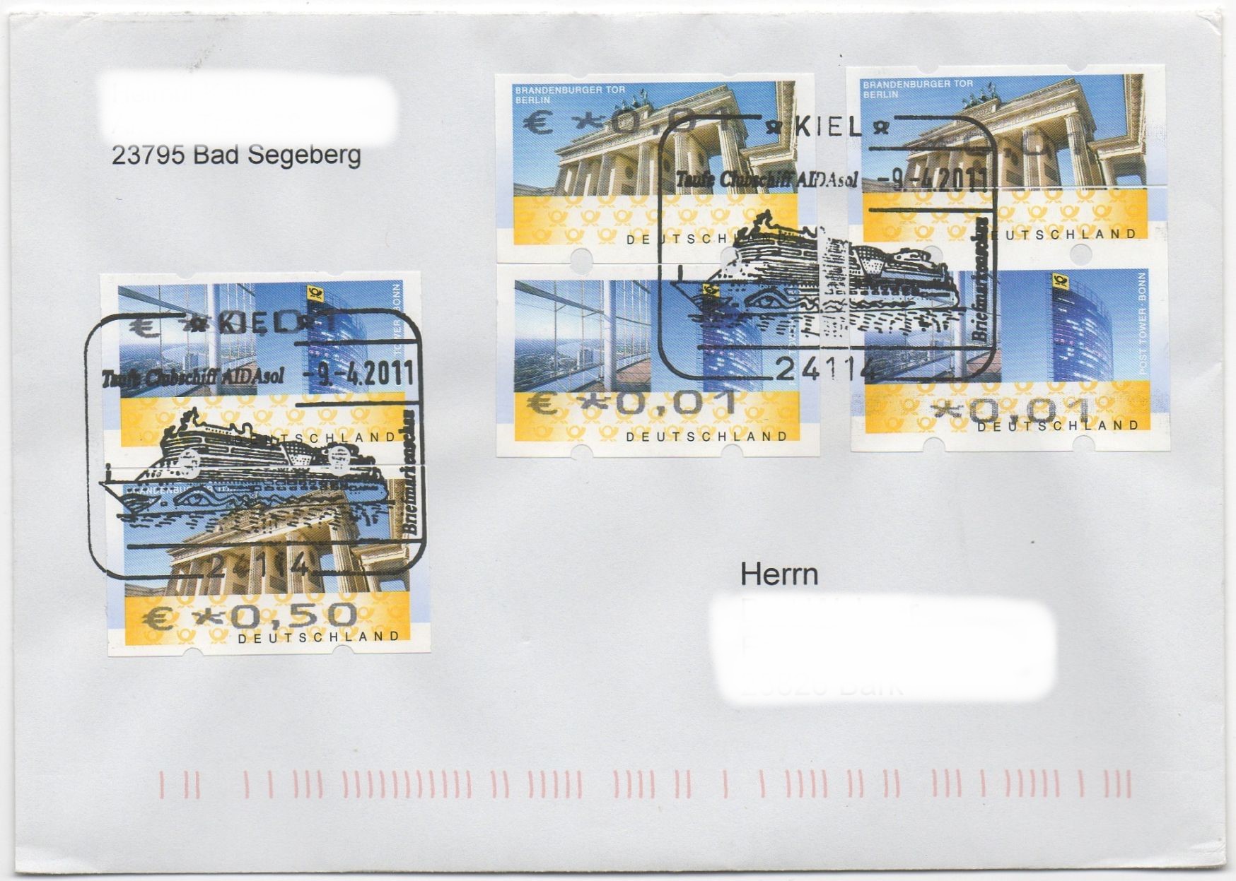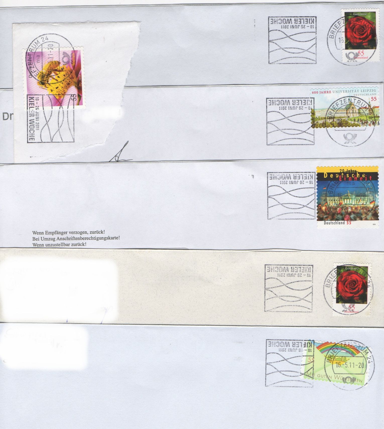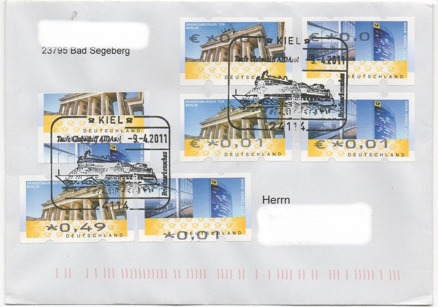 Es ist keine Codierung aufgedruckt, weil die eingesandten Belege von der Stempelstelle dem Absender zurückgesandt wurden! Die Bearbeitung hat fast fünf Monate gedauert, weil die Stempelstelle diese Briefe zunächst nicht stempeln wollte, weil doch erst für April 2011 die Änderung der AGBs vorgesehen war, dass auch Fehlverwendungen "philatelistisch" gestempelt werden dürfen. Bernd HL war aber sehr hartnäckig mit den Consorten in Bonn und hat sich da nicht einfach abspeisen lassen, weil schließlich die AGBs schon zum September 2009 geändert wurden, was die aber in Bonn offenbar vergessen hatten (da weiß eine Hand nicht was die andere tut...). Fast fünf Monate hatten die zuständigen Stellen im Post Tower von Bonn dafür gebraucht, zu erkennen, dass diese Briefe nun doch noch mit dem Stempel vom 02.01.2011 gestempelt werden durften.