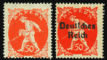 Habe meine Dubletten durchgesehen es gibt Marken mit dem Farbton Orange wie bei den bayerischen Urmarken und es geht bis in Rot wie von ihnen gezeigt. Nach meiner Meinung nichts ungewöhnliches, kommt bei den Uberdrucken von der Abschiedsausgabe auch vor.