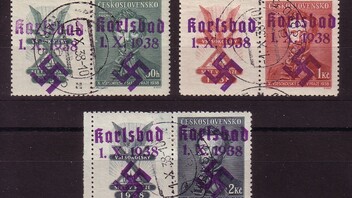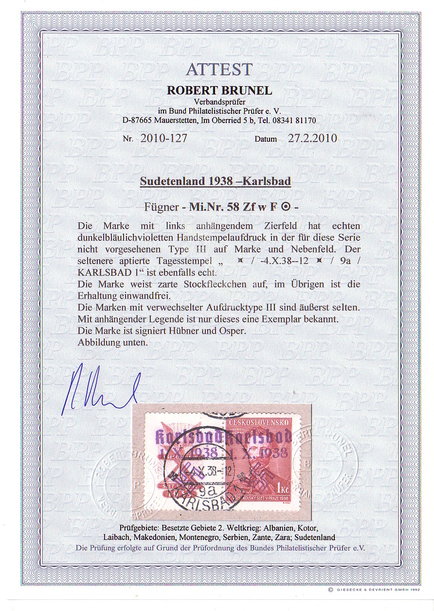 2 Fügnermarken mit dem gleichen falschen Überdruck gezeigt.