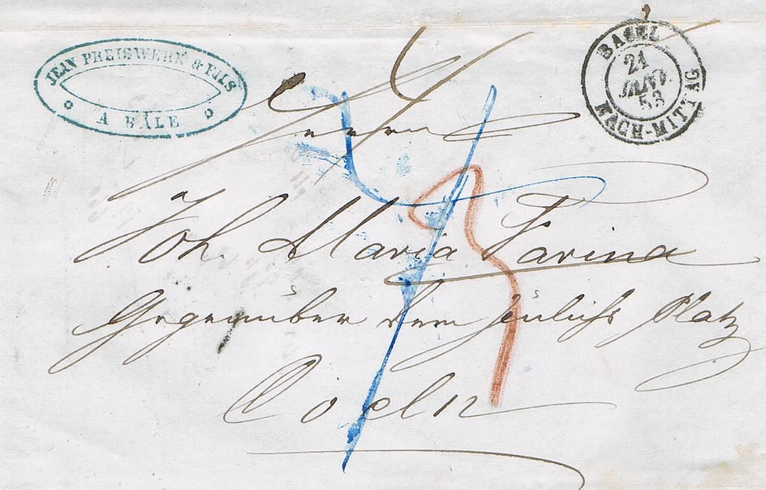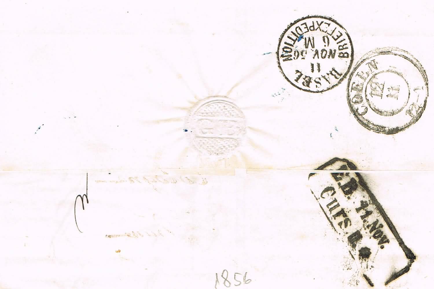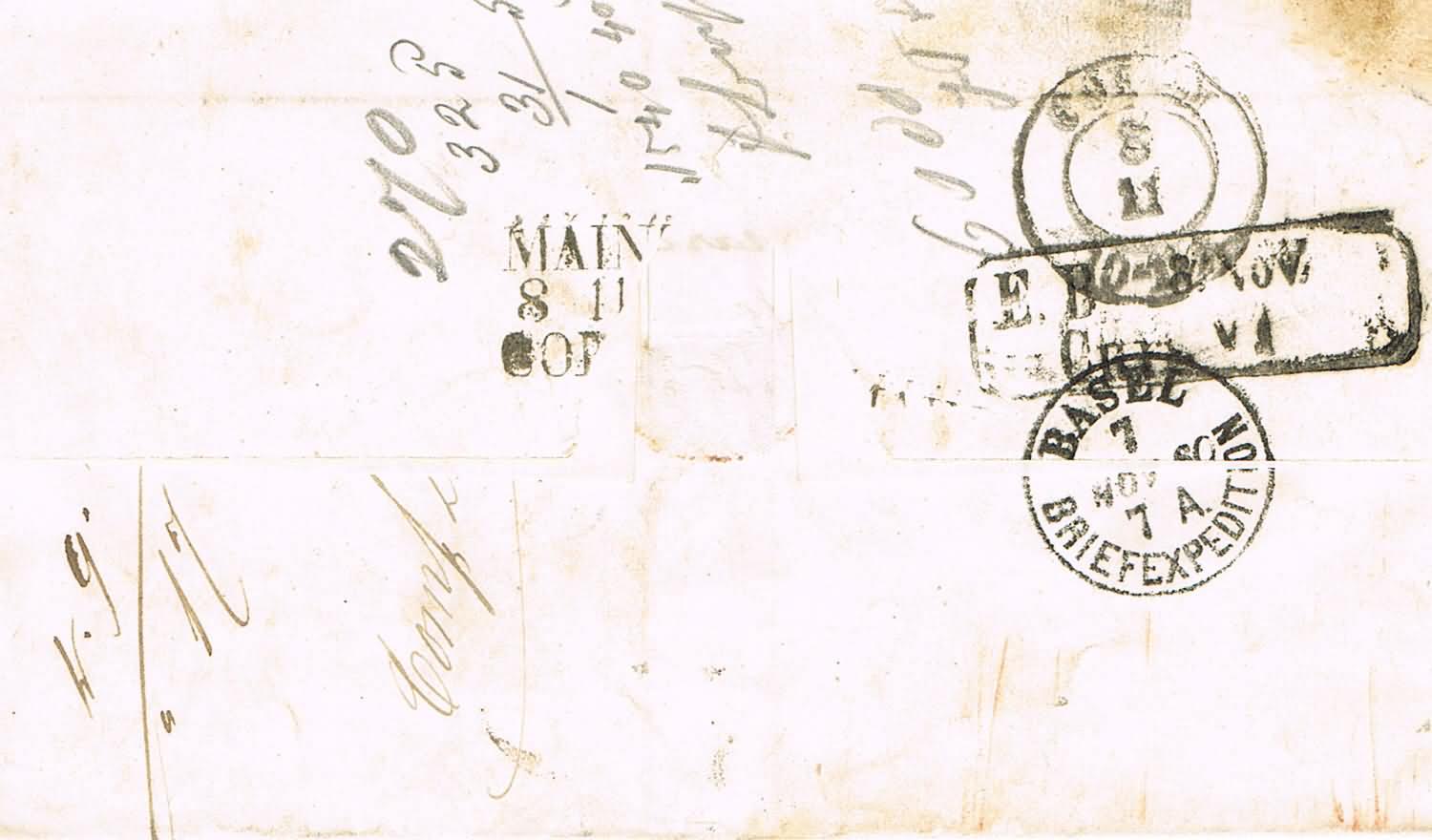 Rudolf C. Rehm hat eine Zuordnung der Distributionsstempel zu den Postwagen-Routen vorgenommen. Danach wurde der D1 auf den ankommenden Briefen aus Richtung Freiburg oder Waldshut gestempelt. Bekannte Verwendungszeit 1846 – 1863. Ab 1863 "verschwindet" der Stempel. Seine Erklärung dafür ist die Erschliessung Schaffhausens durch die badische Eisenbahn ab Sommer 1863 und die damit verbundene Ablösung der Kutschenkurse. Mit deinem Brief von 1867 hast du eine schöne späte Verwendung.