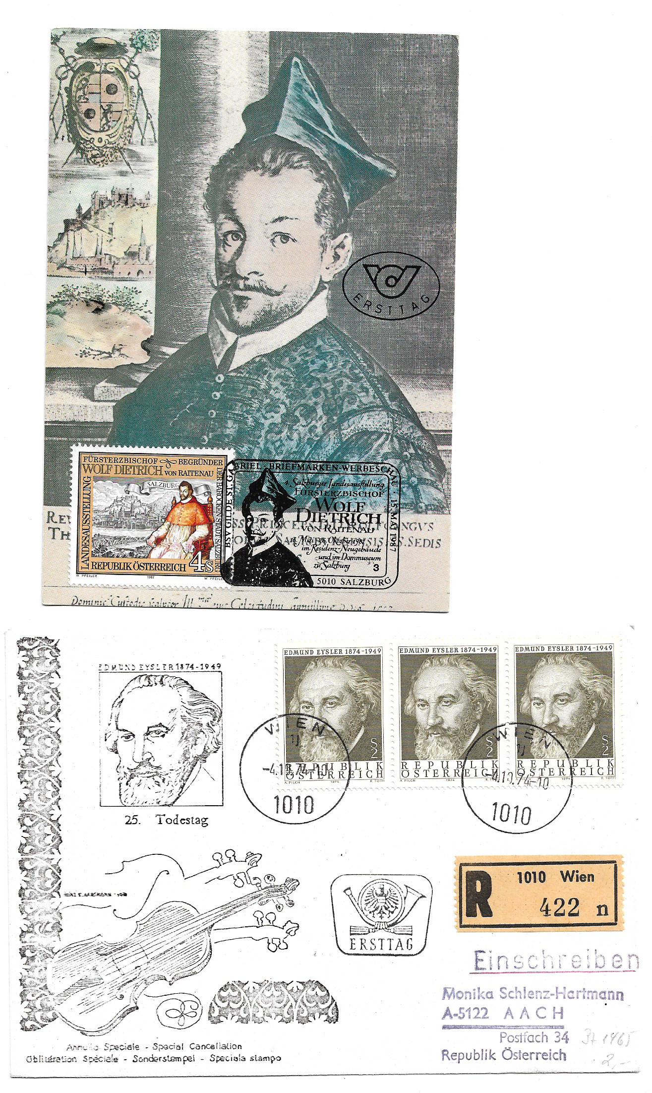 Österreich - 25. Todestag Edmund Eysler - Wien 4.10.74 - Brief als Einschreiben gelaufen