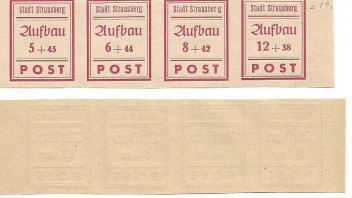 Viererstreifen Michel 34-37 mit Plattenfehler 36BIII "weiter Abstand zwischen r und g" - **