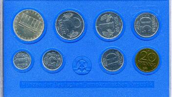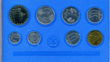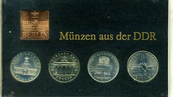 DDR: KMS 1979-1986, 1988, 1990, Verkehrswesen, T. Müntzer, 750 Jahre Berlin, E. Thälmann, Potsdam, 700 Jahre Münzprägung Berlin 1237-1987, Minisätze: Erzträger, Gelehrte, Schmelzen, Schmieden, Strecken.