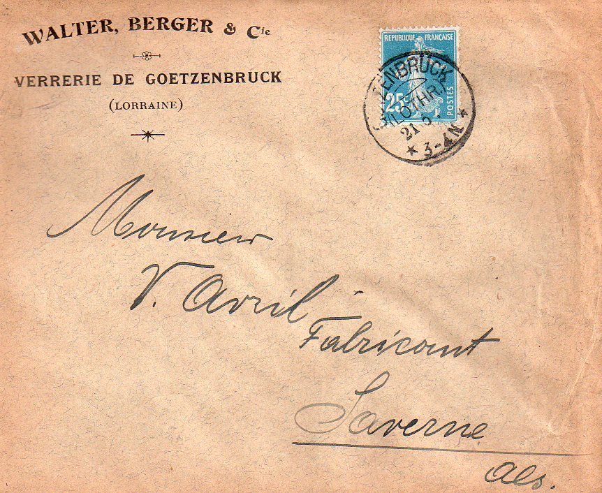 Hier mal ein KOS auf einer französischen Marke. Daran kann man erkennen, dass der KOS auch nach Kriegsende (1.WK) auch in den Teilen die Frankreich zugeschlagen wurden weiter verwendet wurde.