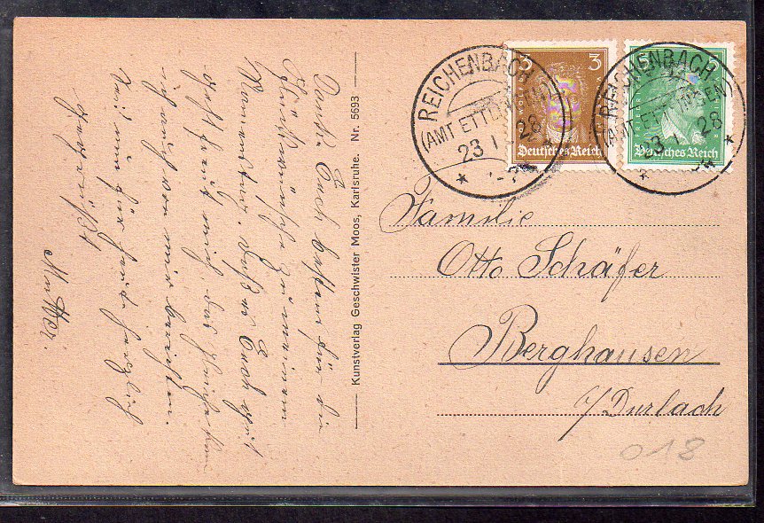 Reichenbach (Amt Ettlingen) ** bisher bekannt bis Dezember 1925, Stempeldatum vom 23.1.28, also 25 Monate später.