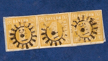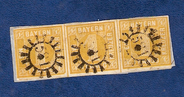 Habe hier einen Dreierstreifen 1 Kreuzer gelb mit gMR 581 Weyhers.
