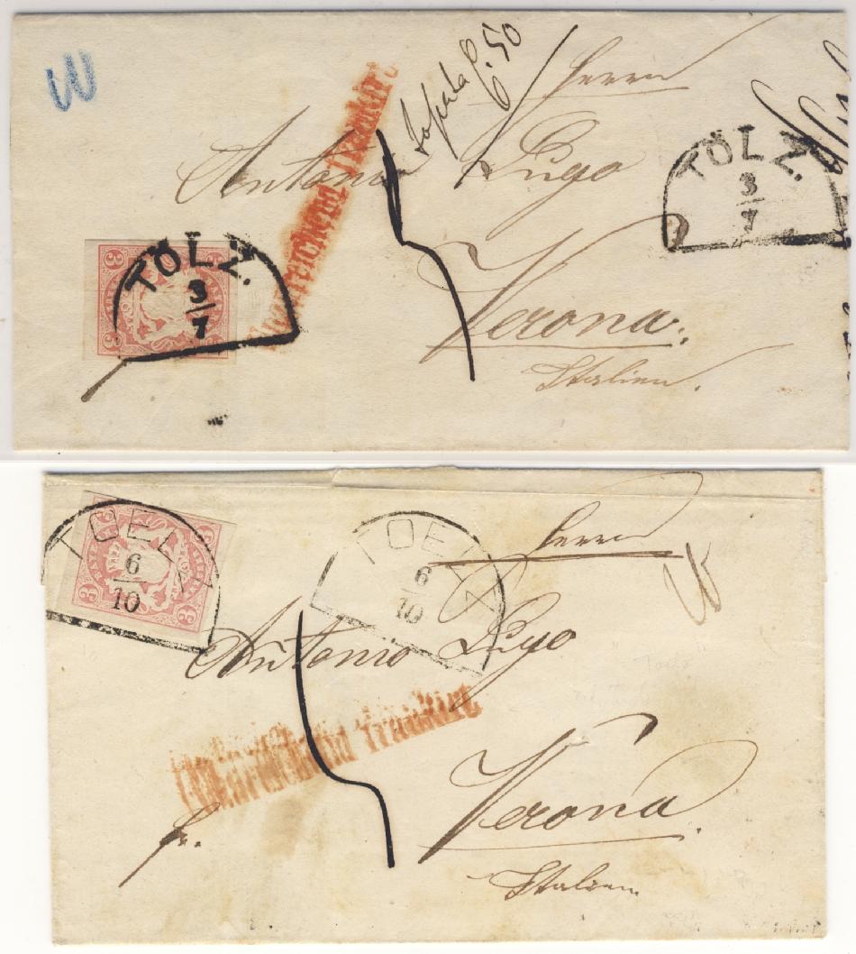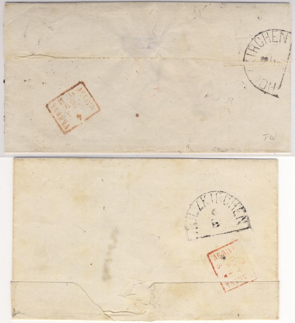 Rückseitige Falzspuren bei gefälligkeits-gestempelten (noch gummierten) Marken.