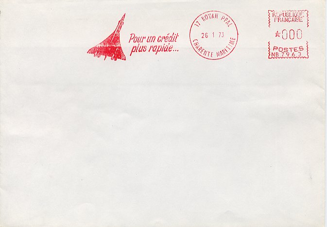 In der Auktion Nr 41 der US meter stamp society wird u.a. ein 0000 Abschlag eines franz. Freistempels von 1973 angeboten (Ausruf: $15). Falls einer der Concorde Connaisseurs daran interessiert sein sollte, bin ich gerne bereit, beim Bieten etc. zu helfen.
