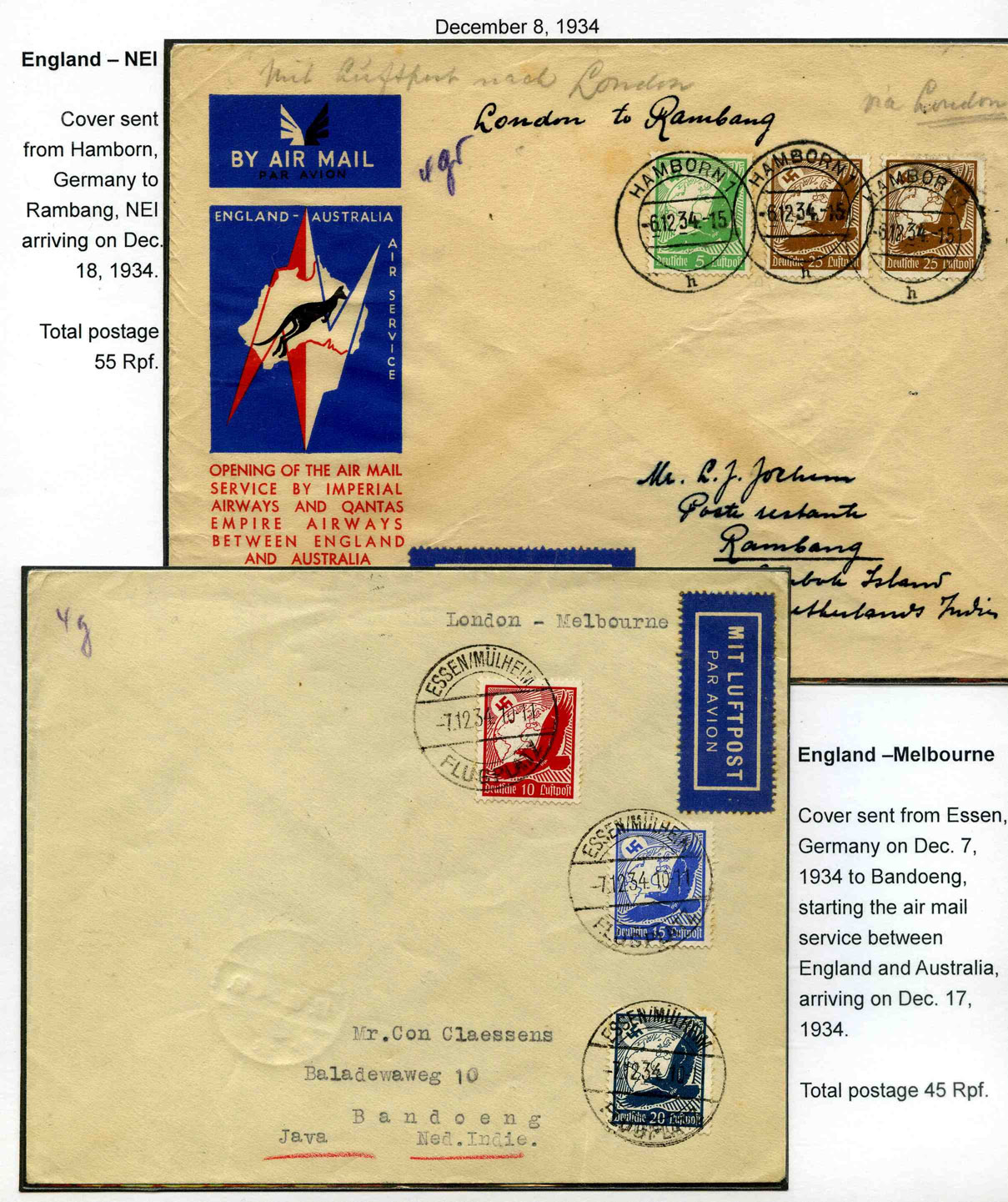 (2) 7/12/34: Luftpostbrief nach Ndl. Indien, 4g, 55 Rpf