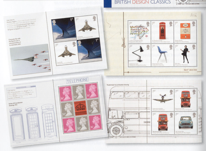 Am 13. Januar erscheint ein "Design Classics prestige stamp book", in dem der Journalist Jim Davies dem Leser zu diversen Briefmarken interssante Hintergrundinformationen liefert. Die Marken haben alle einen Bezug zu klassischen britischen Konstruktionen wie Concorde, London Subway, telephone kiosk, Doppeldecker Bus, Aston Mini etc.