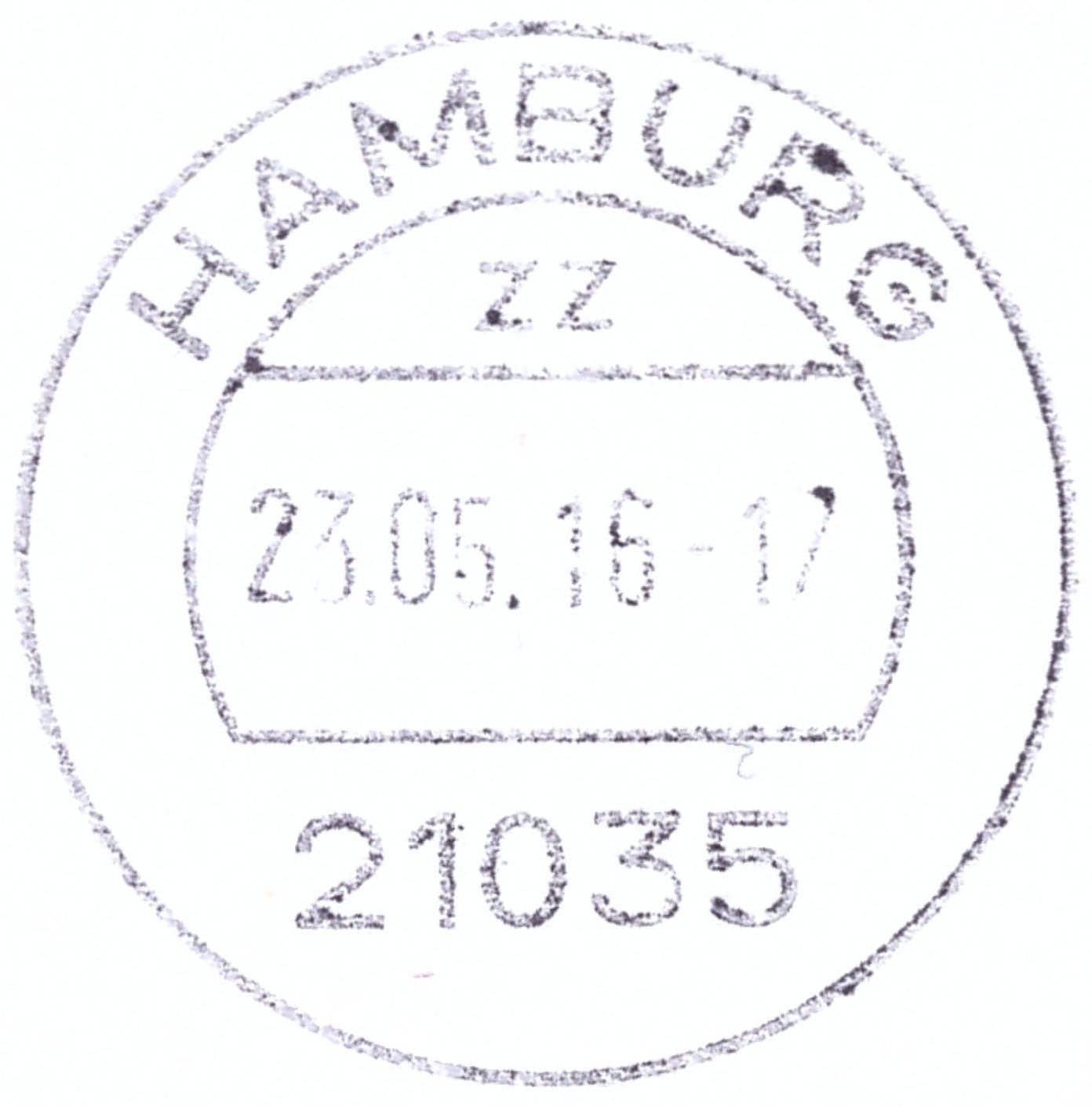 Der neue Stempel lautet "21035 Hamburg zz" ohne Postamtsnummer. Wenn die benachbarte Postagentur am Fleetplatz 2-4,, ebenfalls in Hamburg-Allermöhe mit PLZ 21035, die derzeit den Stempel "21035 HAMBURG 809 zz" führt, auch einen neuen benötigt, könnte es ein Problem geben...