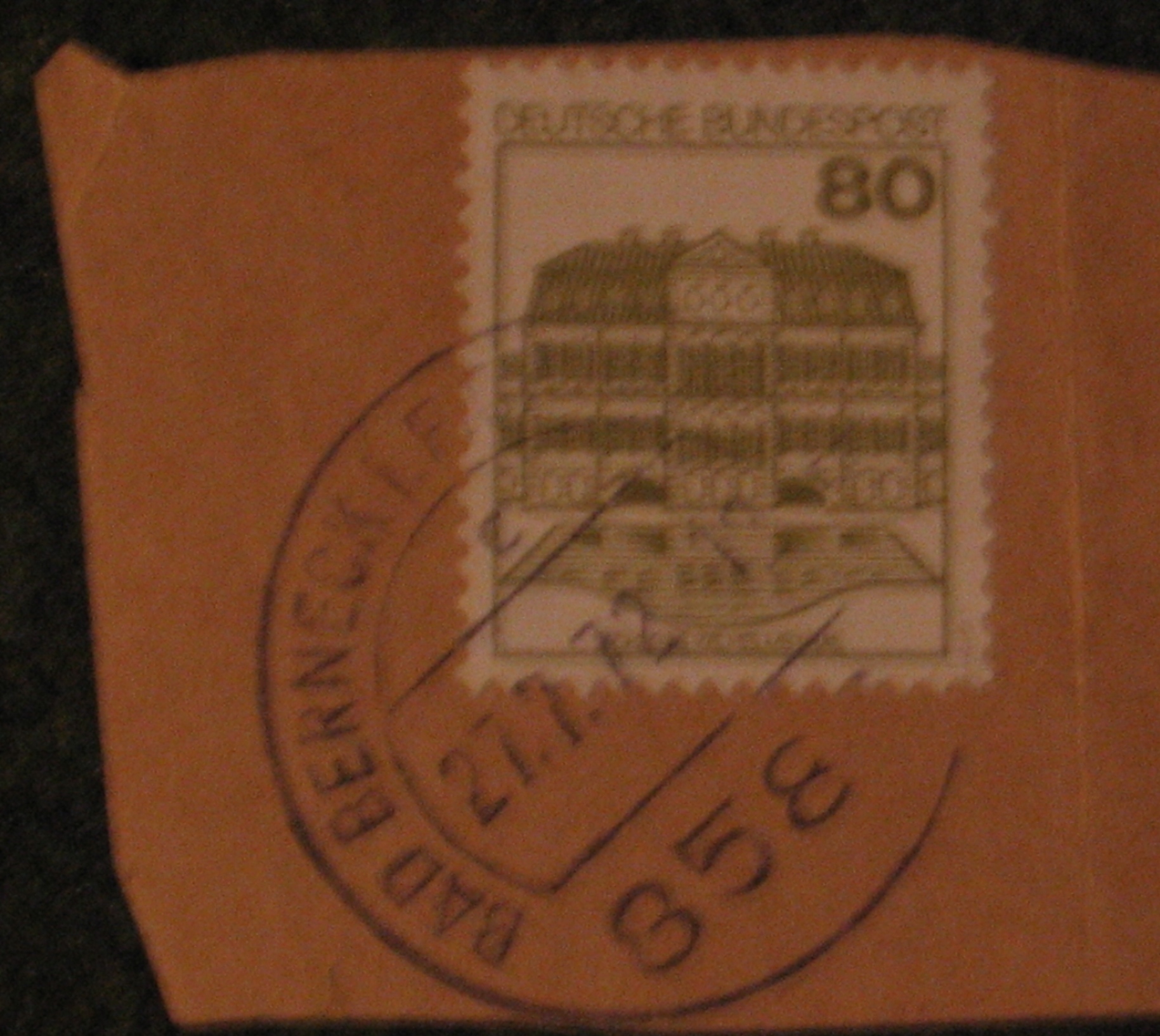 Jetzt steh ich (wieder mal) vor einer Marke, die ich vor ca. 27 Jahren mal von einem Brief abgetrennt habe. Klebt noch auf einem Stück Umschlag.