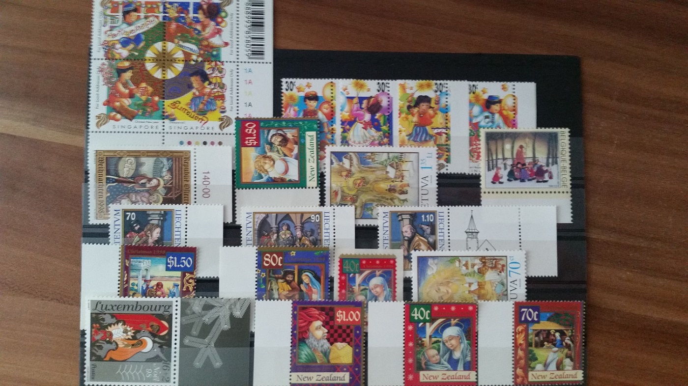 Letztes Foto vom Booklet + 1 Steckkarte mit Briefmarken zum Thema Weihnachten