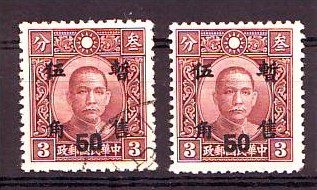 wahrscheinlich habe ich Tomaten auf den Augen, aber diese Marke mit Aufdruck kann ich partout nicht finden. Es ist die 293 III Michel China, aber mit 50 C-Aufdruck. Vielleicht kann mir ein Kenner einen Tip geben ![]()