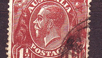 in die Hand: Georg V Freimarke mit einer fehlenden Perle in der Krone.