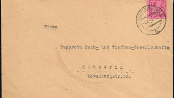 Inlandsbrief im Ortsverkehr bis 20 g vom 1. Februar 1946 aus Schwerin. Der Brief wurde portorichtig in Einzelfrankatur mit 8 Reichspfennigen (1 x Mi.-Nr. 11xa - Ausgabe vom 6. Oktober 1945) frankiert und mit dem Zweikreisstegstempel SCHWERIN (MECKLB.) / c abgeschlagen.