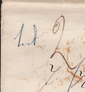 Auf der Briefvorderseite sind einmal 2 Ngr. (Neugroschen), 6 Ngr. und 1/4 Ngr. zu erkennen. Auf der Rückseite sind nochmal 6 Ngr. vermerkt. Ein Leitweg ist leider nicht vorgegeben. Auf der Rückseite ist ein Bahnpoststempel Leipzig-Magdeburg abgeschlagen. Man kann also davon ausgehen, dass der Brief über Preussen und Belgien ging (höchstwahrscheinlich der schnellste Weg). Die Postvereinsgebühr wären 3 Ngr. der belgische Transit 3 1/4 Ngr. und die britische Gebühr 5 Ngr. zusammen 11 1/4 Ngr. Wenn ich alles auf dem Brief zusammenrechne komme ich auf 14 1/4 Ngr.