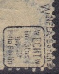 Nach genauer Betrachtung jedoch handelt es sich aus meiner Sicht um eine Fälschung, da insbesondere links neben der Spitze des rechten Hügels die drei markanten Punkte fehlen, die bei der echten Marke vorhanden sind.