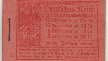 Es handelt sich um das Markenheftchen Germania 9 wenn ich nicht irre. Es ist komplett mit allen 5 Blättern. Leider hat das gute Stück durch unsachgemäße Lagerung den Feuchtteufel gefangen wodurch die postfrischen Marken auf den Zwischenblättern festkleben. Auch sonst ist das gute Stück mit ein paar Macken gesegnet.