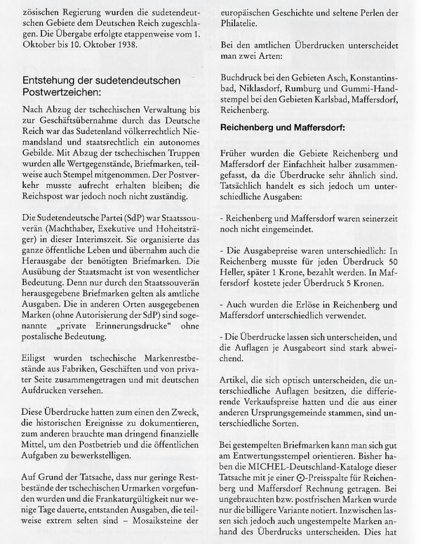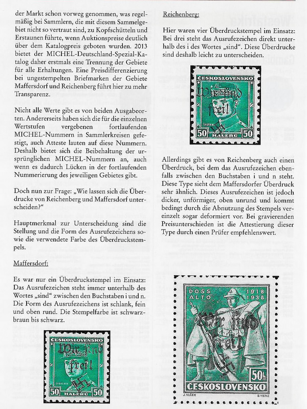Ein Schwerpunkt bildet die Typisierung der Hand-Gummistempel von Reichenberg, Maffersdorf und Karlsbad, so dass jedem Überdruck der jeweilige Originalstempel zugeordnet werden kann. Dies ist von zentraler Bedeutung, den im Umkehrschluss bedeutet dies: kann ein Überdruck keinem Originalstempel zugeordnet werden, ist dieser Aufdruck falsch!