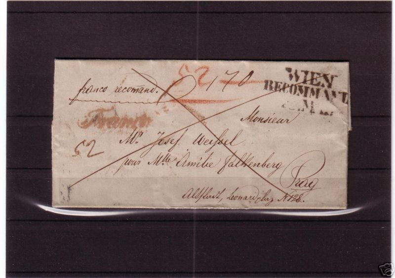 es handelt sich um einen Reko Brief aus 1835 Ofen/Ungarn nach Waldstetten/Württemberg,mit notiertem gewünschten Laufweg Wien -Ulm ,das rückseitig vermerkte Franco ist klar aber