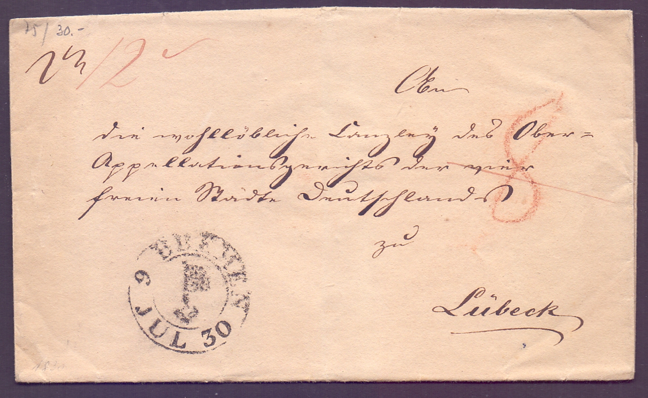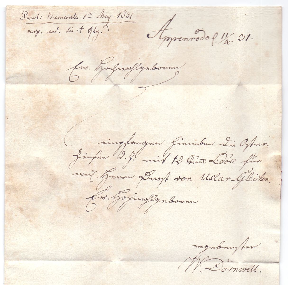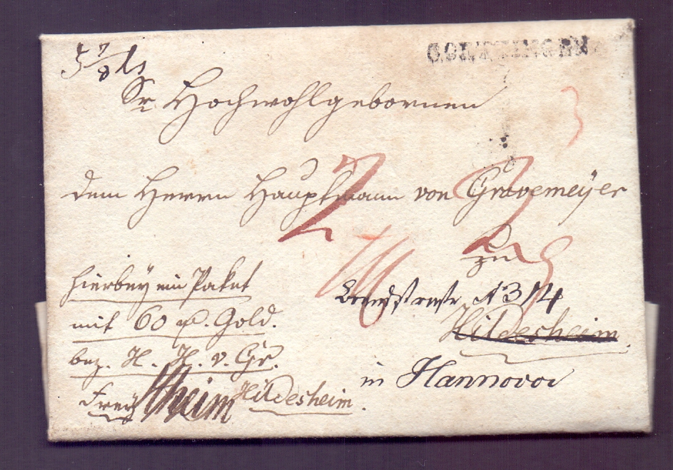 Ich habe einen sehr sauberen dreiseitigen Brief vorliegen. Er ist am 22. Sept. 1812 auf deutsch in Göttingen verfasst worden. Viel mehr kann ich leider nicht lesen. Er ist gefaltet und trägt auf der Rückseite einen L1-Stempel Göttingen (Feuser/Münzberg 1181-2), allerdings ohne Adresse.