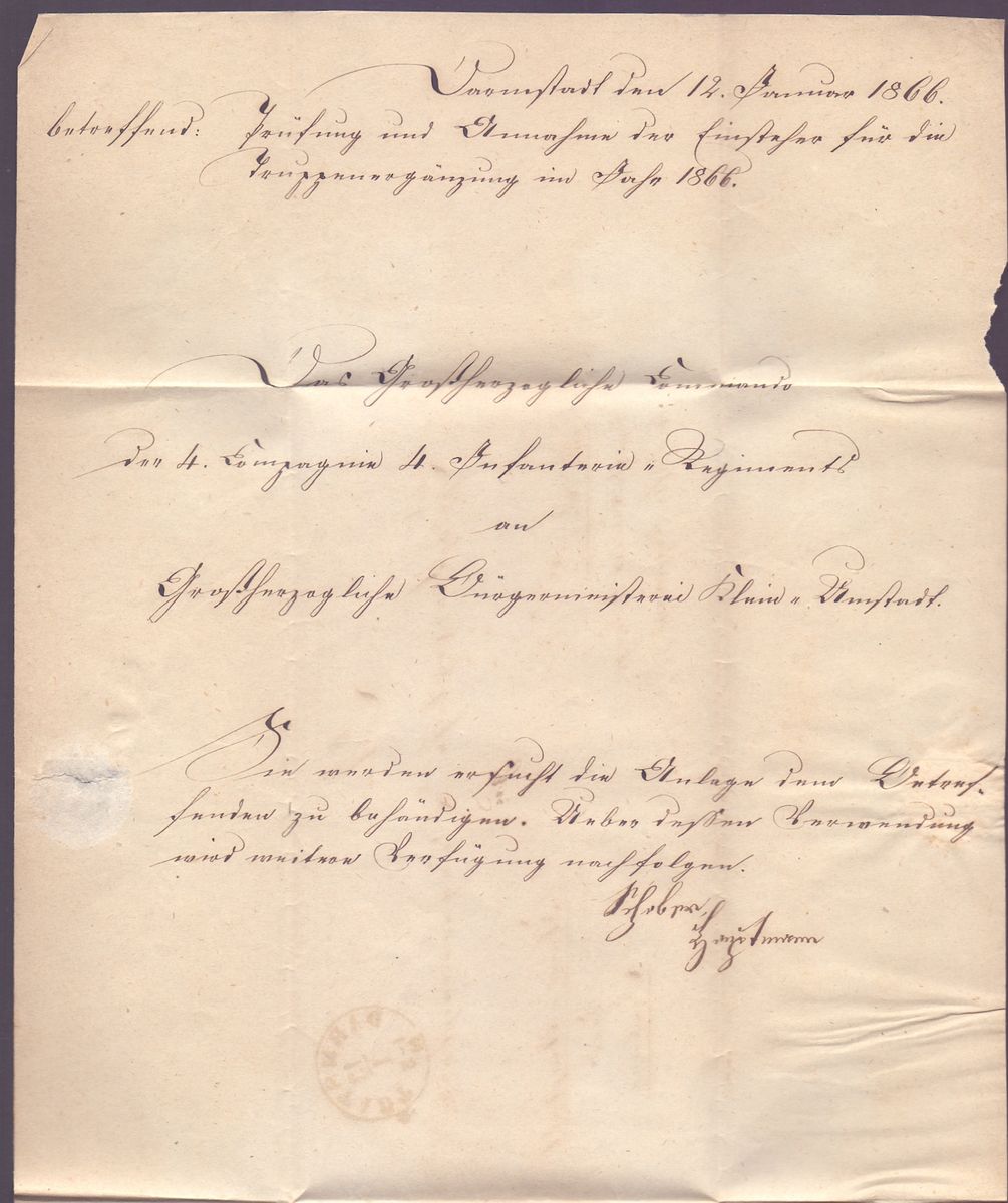 anbei die Anschrift und der kurze Inhalt eines Militärbriefs aus 1866. Wer kann den Text übersetzen?`