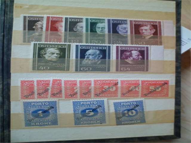 ich als Briefmarkenlaie bräuchte von euch mal Hilfe. Habe von meinem Onkel ein paar Briefmarken geerbt. Die meisten sind alle von vor 1950 und aus Österreich und Deutschland. Viele aus Österreich sind sogar ungestempelt und sehen postfrisch aus (bei 3-4 Stück war eine Falz hinten), aber ansonsten scheinen die meisten davon postfrisch und satzvollständig zu sein. Die fotografierten Breifmarken waren sogar separat von den anderen Breifmarken und daher interessieren sie mich zunächst besonders. Nun meine Fragen: