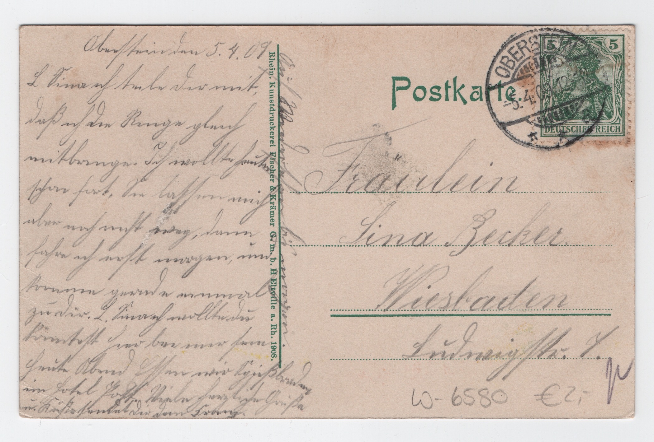 - gestempelt am 05.04.1909 in Oberstein