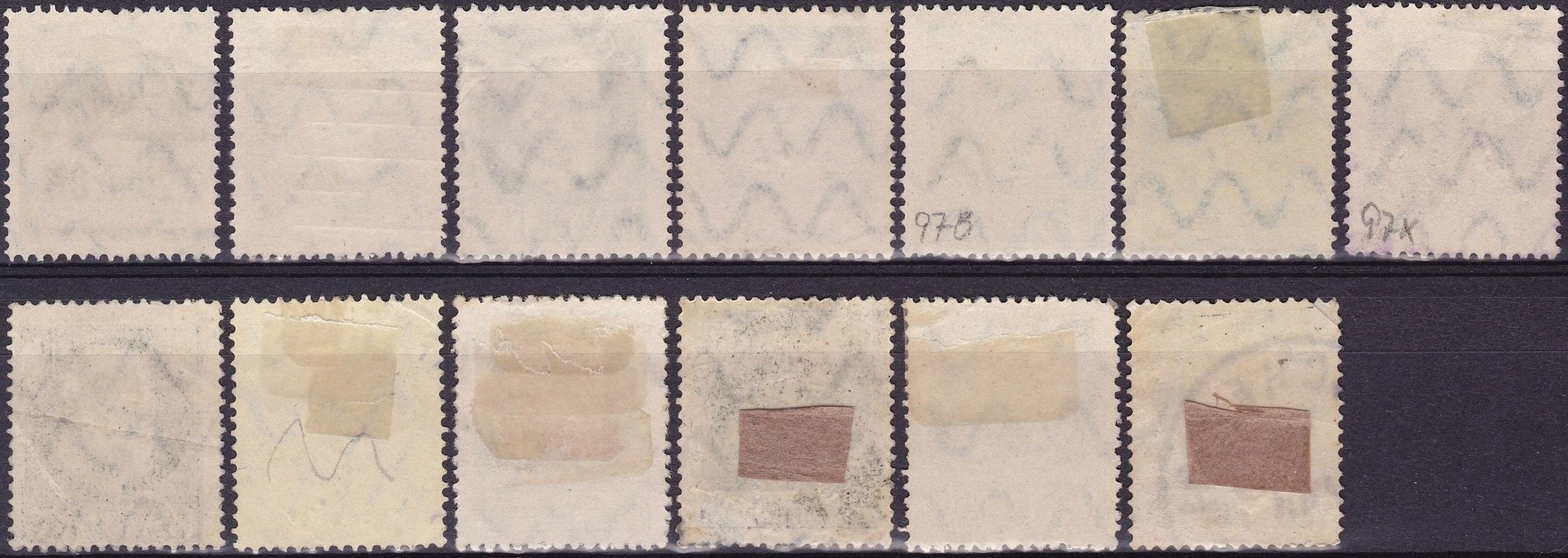 Ich gehe auch mal weiter mit einigen Fragen zu Bayern. Genauso, wie ich noch Probleme mit den Kriegs- und Friedensdrucken bei der Ludwig Ausgabe habe, habe ich Schwierigkeiten mit den Papierarten der Dienstmarken. Habe mal drei Werte zusammengesteckt und jeweils die Rückseite mitgescant. Kann mir jemand ne Einschätzung machen?