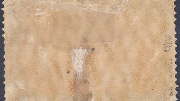 Die dritte Marke hat einen roten Stempel, es sieht am ehesten nach 14 aus. Könnte der echt sein? Auch hier, Prüfung lohnenswert, da rückseitig leichte dünne Stelle?
